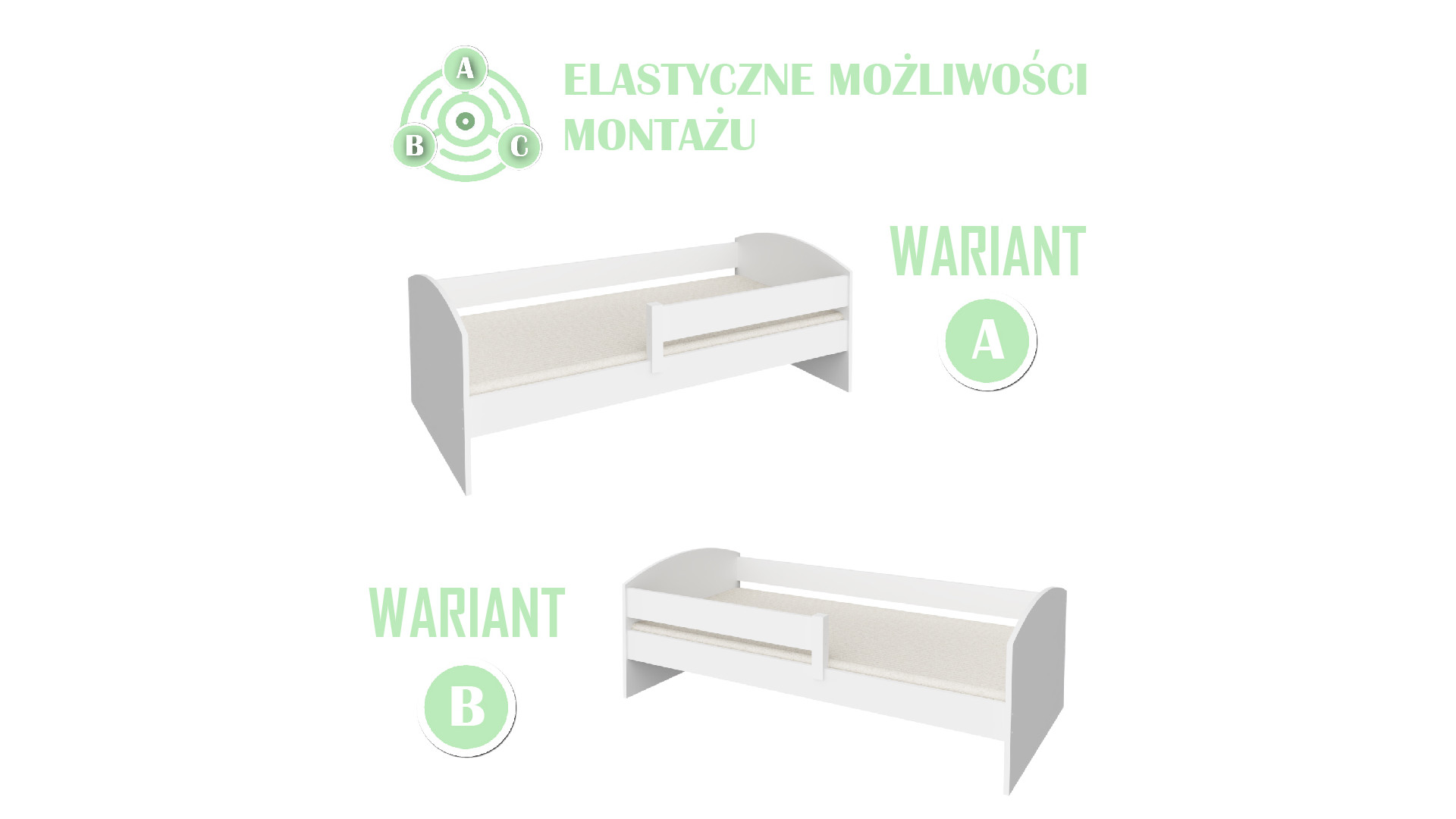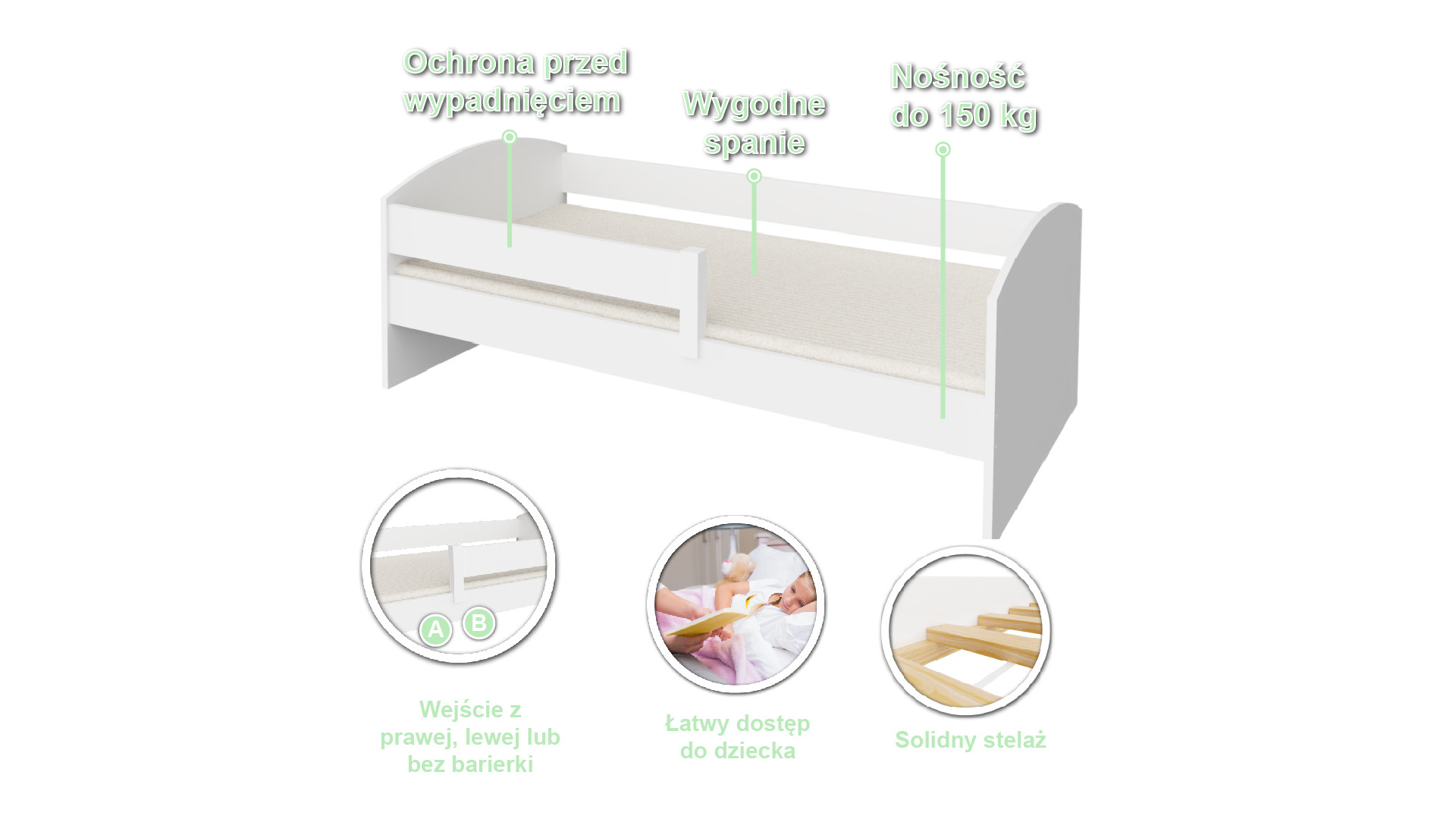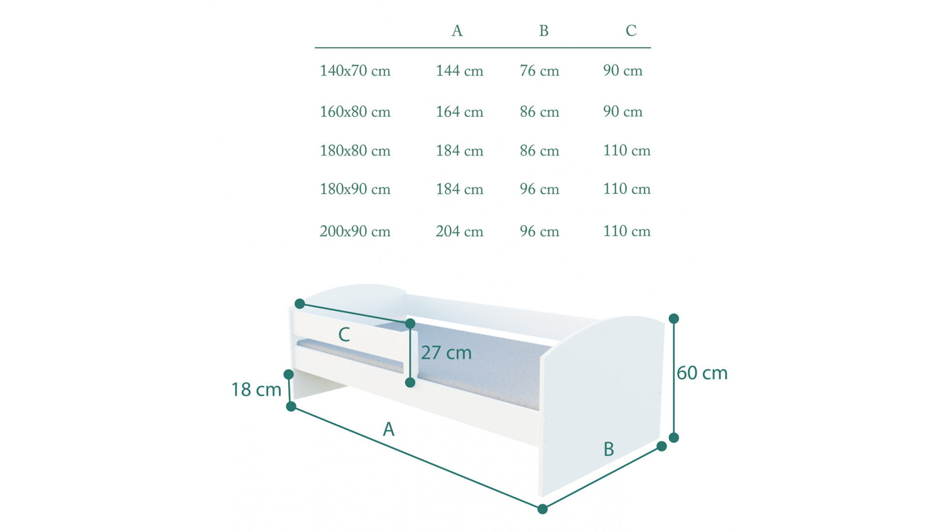 | Dostępne rozmiary 140x70, 160x80, 180x80, 180x90, 200x90 |