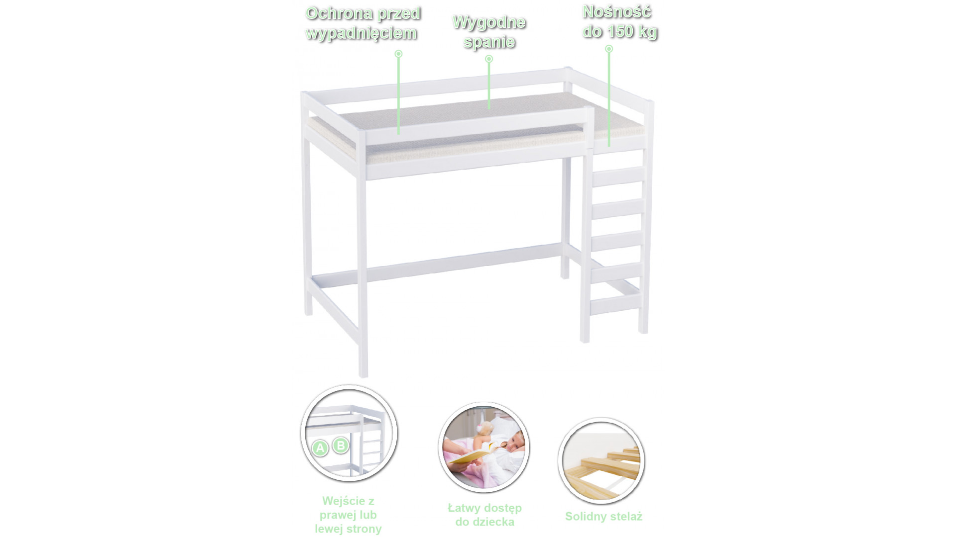 Antresola Łukasz to praktyczne rozwiązanie do małych wnętrz – pod łóżkiem można urządzić kącik zabaw, biurko lub szafki. Wykonana z litego drewna najwyższej jakości, o zaokrąglonych krawędziach i oryginalnym wzornictwie. Malowana ekologicznymi, antyalergicznymi lakierami wodnymi, bezpiecznymi dla dzieci.