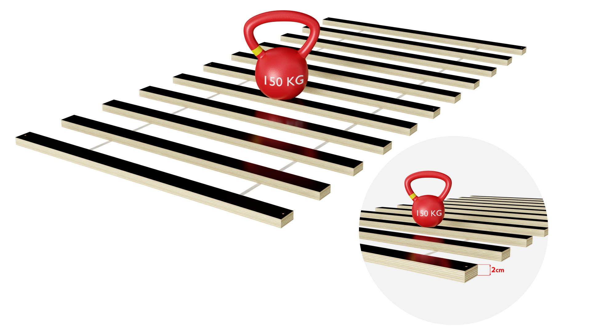 | Stelaż Sklejka o grubości 2 cm, wytrzymałość do 150kg |