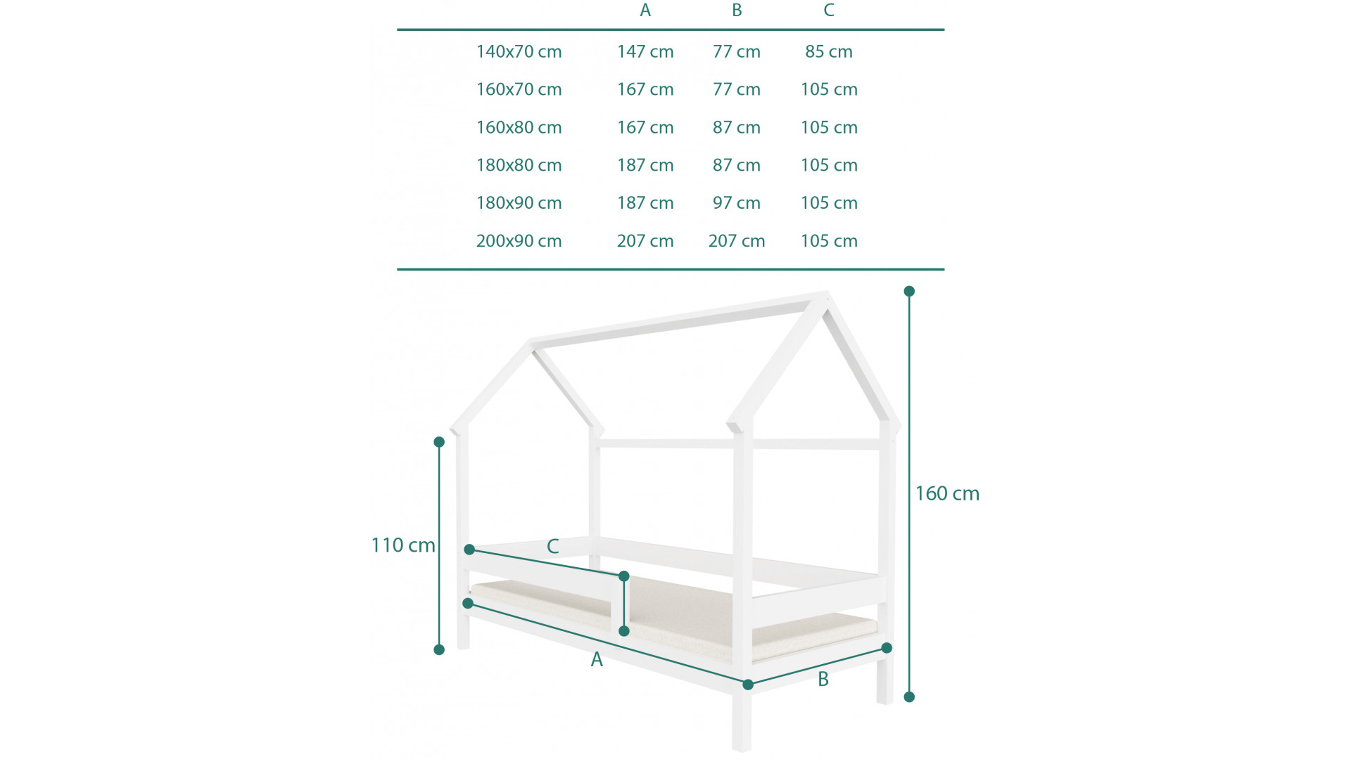 | Dostępne rozmiary 140x70, 160x70, 160x80, 180x80, 180x90, 200x90 |