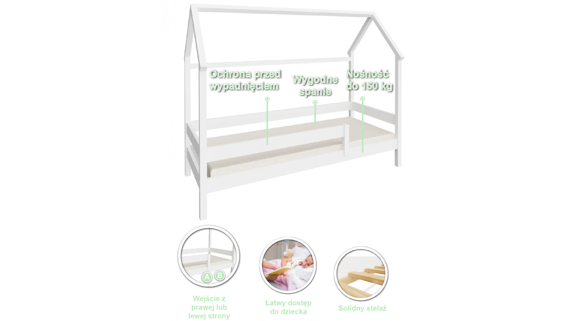 Bella to nie tylko łóżko, ale i mały domek – idealny do zabawy oraz snu. Materiały solidne.